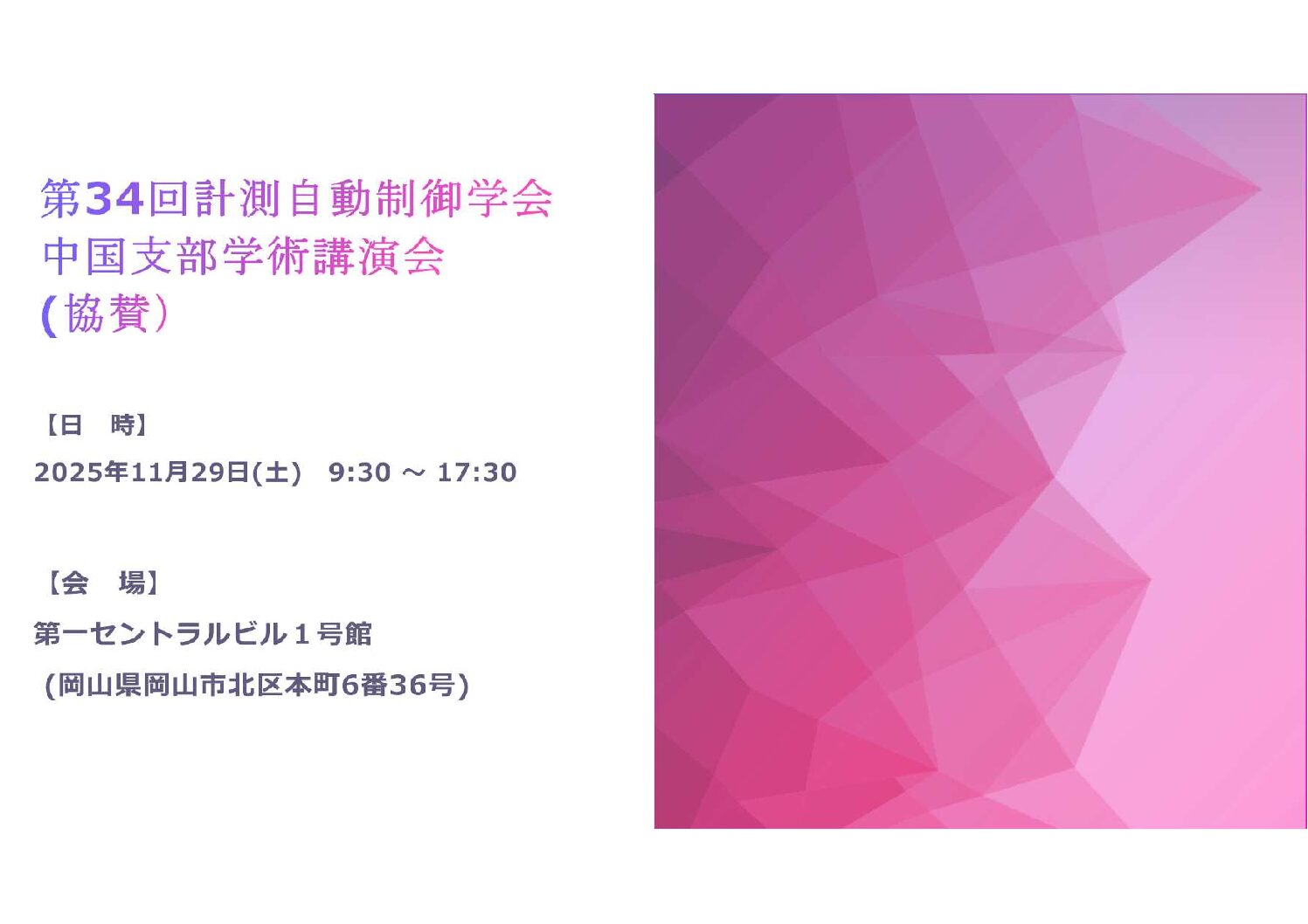 【開催日11/29】計測自動制御学会中国支部学術講演会(協賛)