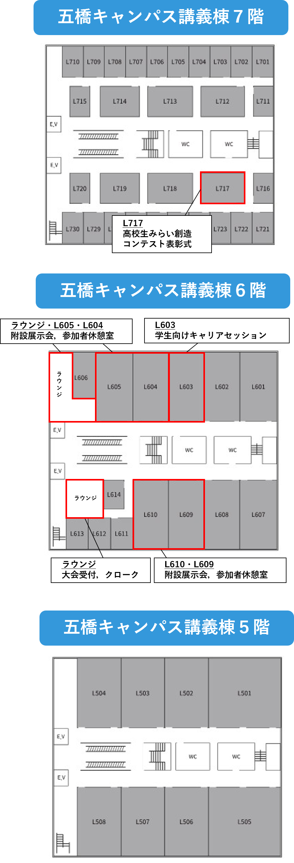 参加者休憩室は講義棟6階展示会場にございます。