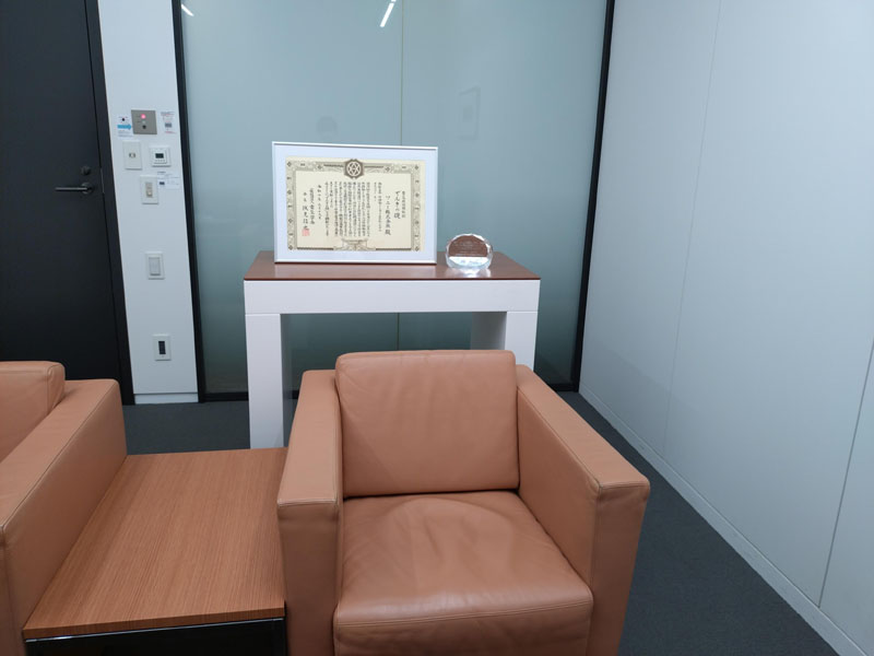 ソニー株式会社 応接室にてクリスタルトロフィーおよび顕彰状等を展示いただいております。